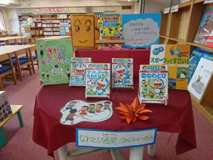 今週のなわとび週間に合わせて、学校司書さんが、運動に関する本を集めて展示してくださいました。