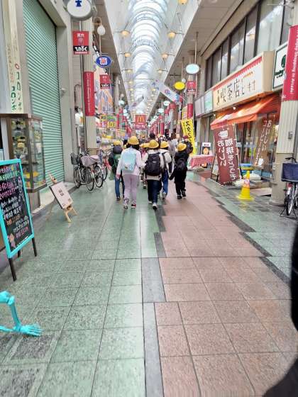 くらしの今昔館の後は、天神橋筋商店街を見学しました。途中までですが、日本一長いアーケード商店街を歩き、「まだまだ先が長いんですか。」驚いていました。
