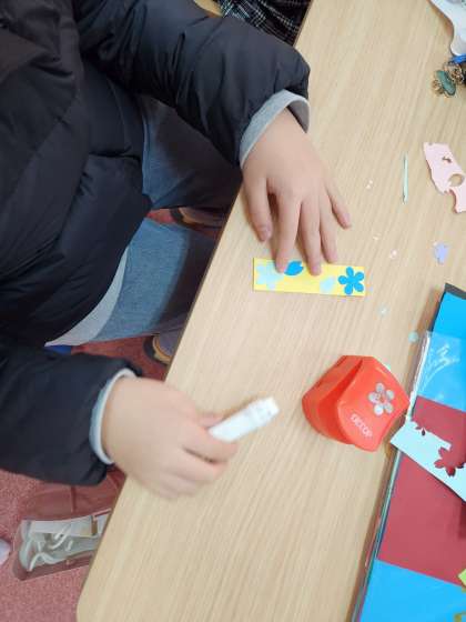 二学期に実施した読書週間のクイズに、全問正解した人にプレゼントするためのしおりを作りました。