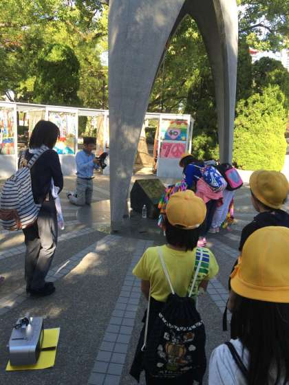 平和記念公園では、これまでの平和学習を生かして、平和集会と碑めぐりを行いました。