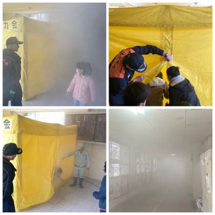 消防署の皆様のご協力で、煙ハウスを設置していただきました。