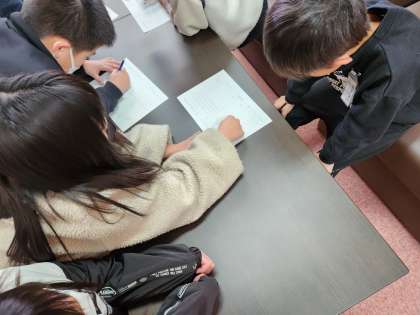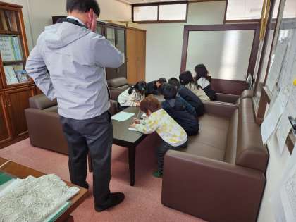 4年生の子が先に校長室に来て考えていると、後から1年生の子どもたちが「教えてください」とたくさんやってきました。