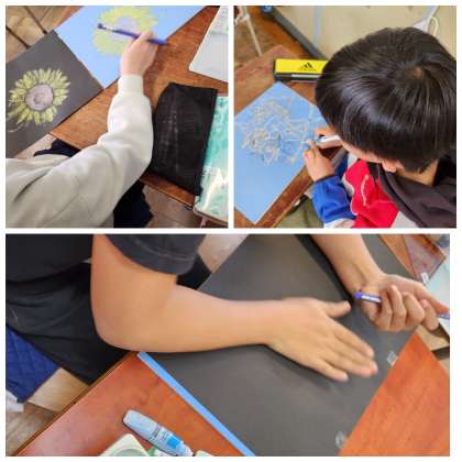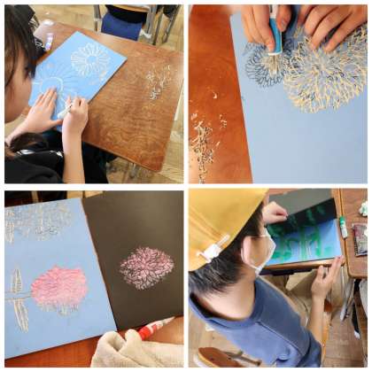 はじめて彫刻刀を使っての木版画に挑戦しています。