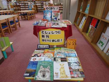 図書室に新しい本が入りました!学校司書さんが思わず手に取りたくなるようなステキな展示をしてくれています。