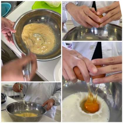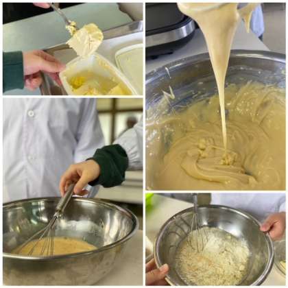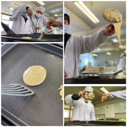 先生の話をよく聞いて、ふっくらしたホットケーキをつくりました。