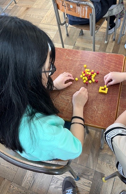 5年生の算数では、一辺が1cmの立方体を並べて、かさを数で表し、二つの立体の体積を比べました。