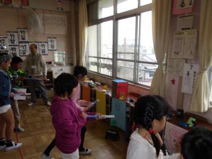 4年1組は、射的(空気でっぽう)のお店をしました。