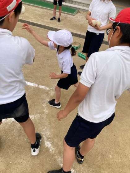 ソフトボール投げでは、ボールの投げ方を教えてあげる姿も見られました。