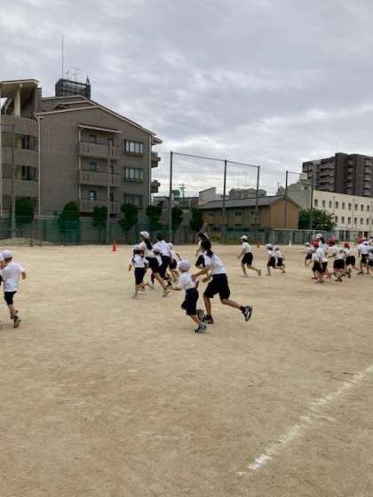 はじめに6年生がシャトルランをしました。1年生の声援のおかげで記録を伸ばすことができました。その後に、1年生が実施しました。一生懸命走る1年生に「がんばれー」と6年生が声をかけたり、一緒に走ったりして応援していました。