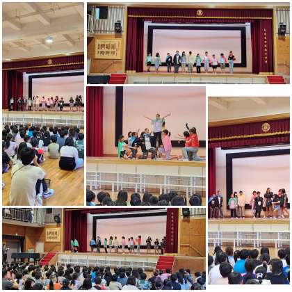 今年も城北小学校に城北レンジャーがやってきました!代表委員の児童が、来週の「あいさつ週間」をPRするために、寸劇を作って、みんなの前で発表しました。