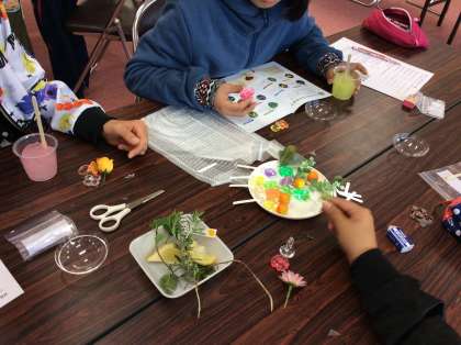 次に、5種類の精油を嗅いで1番好きな香りを決め、その精油を使って、アロマポットを作りました。「勉強に集中できるように、ローズマリーの香りにした。」「イランイランの香りをお母さんにプレゼントする。」と子どもたちは楽しく作ることができました。
