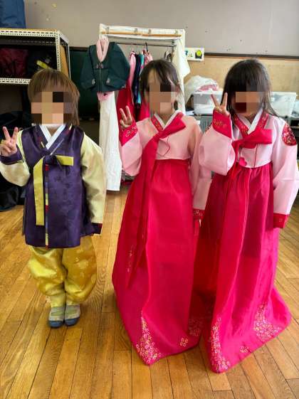 子どもたちの熱い気持ちに応えて、6時間目にチョソン友の会の部屋に行って、交代で衣装を着ました。みんなとても嬉しそうでした。