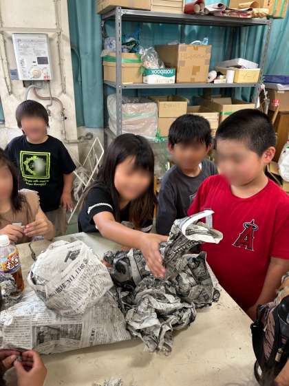 最後に、使った新聞を集めて班で1つの大きな作品も作りました。