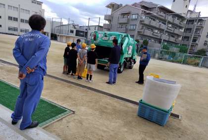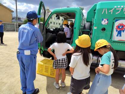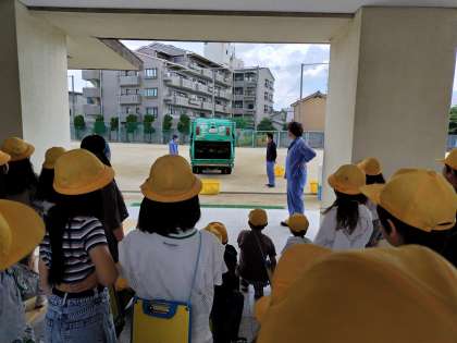 授業後、収集車のオルゴールが聞こえると、「あっ、これは普通ごみ(収集)の音だ。」など反応しており、学習した意義を感じました。