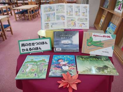 今年は例年より梅雨入りが遅れているようですが、図書室では、学校司書さんが一足先に雨に関する掲示や本の紹介をしてくださいました。