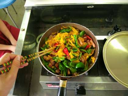 ウィンナーと一緒に炒めて実食!