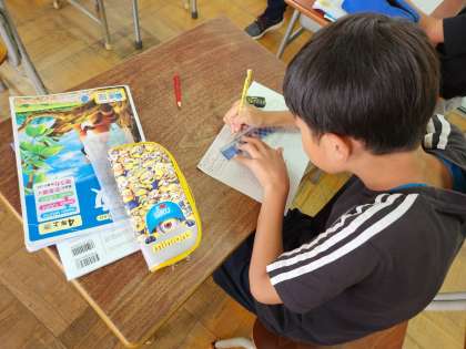 今日は、ドット図を使って、見本の図形をかく学習を行いました。