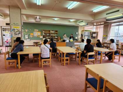 学校司書さんのお力を借り、ようやく読書通帳の準備が整いました!今日は、先生たちに読書通帳の使い方の説明会を行いました。
