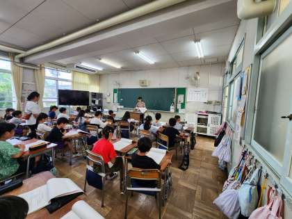 夏休みの宿題について、学年だよりを見ながら説明を聞いていました。全員必ず提出する宿題と、自由課題があるので、よく読んで取り組みましょう。
