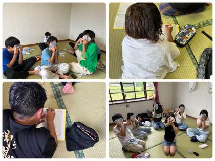 お風呂を待っている間に、今日の振りかえりをしたり、みんなでトランプをしたりしています。