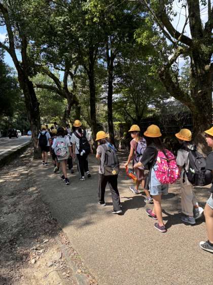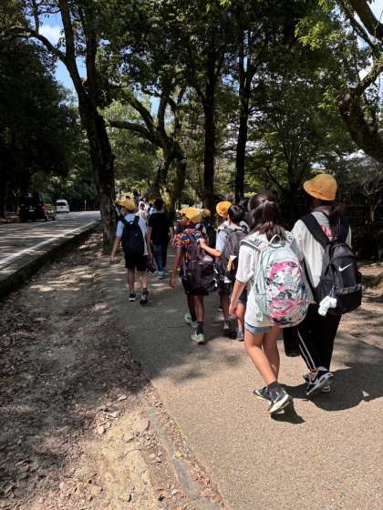 日差しが強くなってきましたが、流石は高学年、日陰を選んで歩いています。