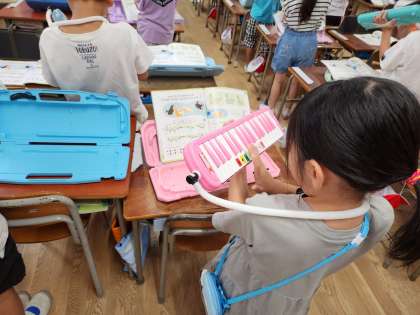 学習発表会に向けて、鍵盤ハーモニカの演奏の練習をしています。1学期から、少しずつ鍵盤ハーモニカの吹き方に慣れていき、今では一曲通して吹けるようになりました。