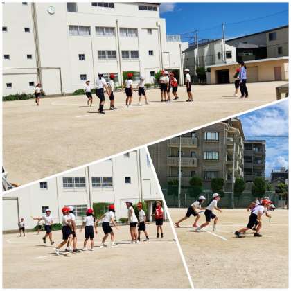 なわとび週間に合わせてポップコーンを跳んだ後、リレーの練習をしました。