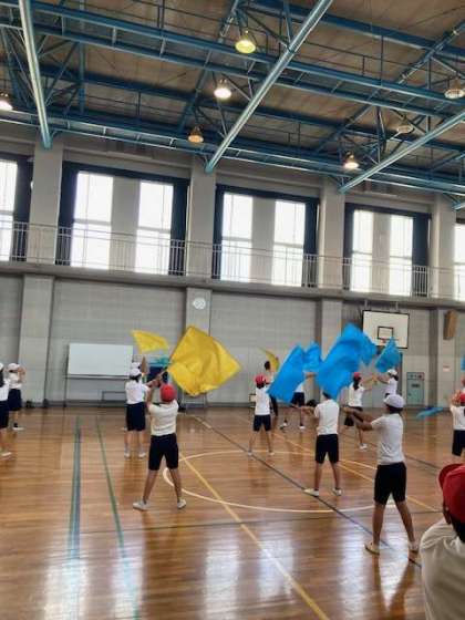 今日は、運動会に向けて団体演技のフラッグ(旗)の練習を行いました。学習発表会も終わり、少しずつ運動会に向けて、演技や競技、委員会等の練習がはじまっていきます。最高学年として運動会を盛り上げられるようにしっかりと準備を進めていきたいと思います。