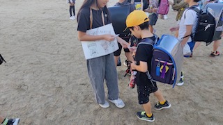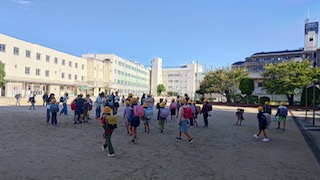 代表委員会の児童が運動場に立ってあいさつ運動を行いました。みんながあいさつできるようにと、元気にあいさつできたら証としてイラストを配りました。自分から進んであいさつができる児童が増えてきましたね。