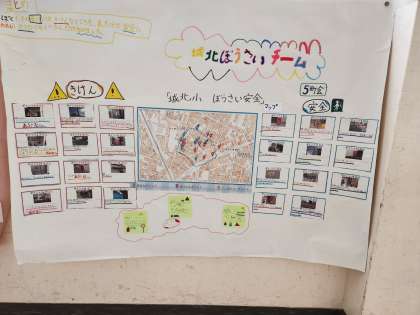 実際に地域を回って見つけた“安全”と“危険”を写真に撮って、掲示物にまとめました。