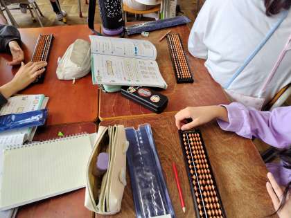 普段使う筆算とは違う順番で玉を入れるので苦戦していましたが、そろばんに親しむことができました。