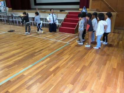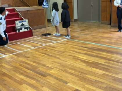 警察署の方や区役所の方にお越しいただき、交通安全教室が実施されました。