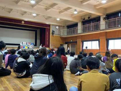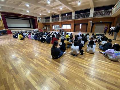 交通ルールや、自転車の点検の仕方、安全な乗り方など、わかりやすく教えてもらい、何名か実際に講堂で自転車に乗って確認してみました。
