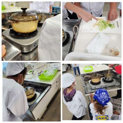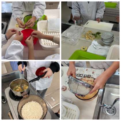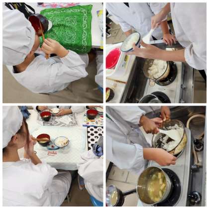 日本の伝統的な主食と汁物である、ご飯とみそ汁の調理実習を行いました。