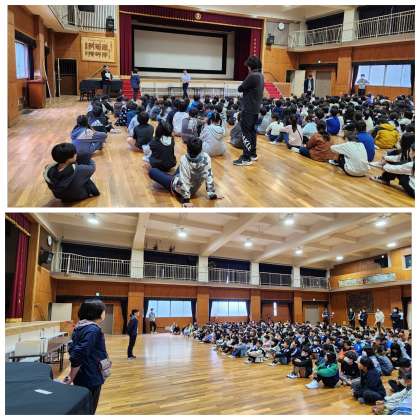 全校児童が集合した後に、旭警察の方から、不審な人を見かけたときは決して近づかず、すぐにその場から離れて大人に知らせてほしいとお話がありました。