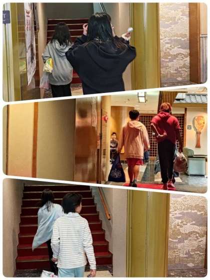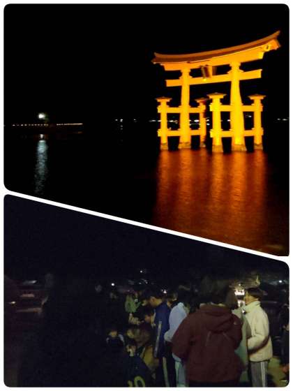 入浴後にあったかい服を着て厳島神社のライトアップを見に行きました。