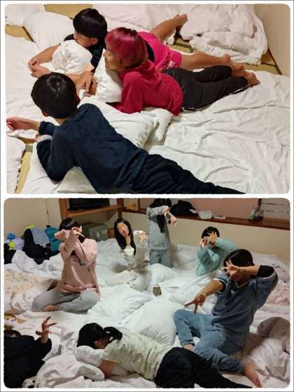 室長会議で明日の朝の過ごし方を確認し、就寝の準備です。