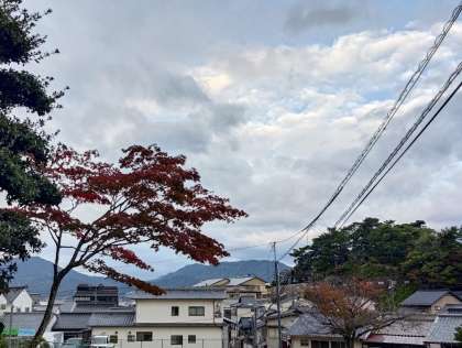 宮島での朝をむかえました。少し雲がでていますが、心配していたほどの寒さはなく、少し安心しました。