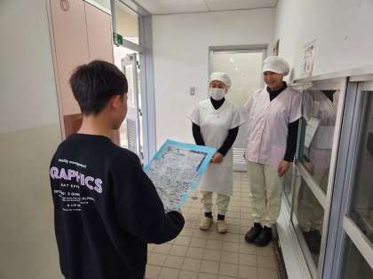 健康委員会では、給食調理員さんへのインタビュー動画を作成したり、感謝の気持ちをお手紙にしてプレゼントしたりといった活動をしました。
