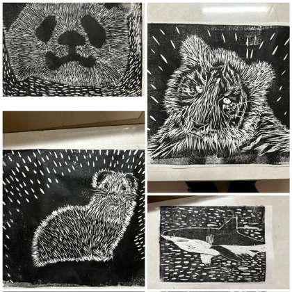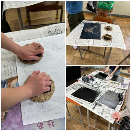 インクの量に気をつけながら刷っていきました。思っていた以上に素敵な作品になったため、実際に出来上がった作品を見ると、思わず「おぉー!」と声がもれる子もたくさんいました。