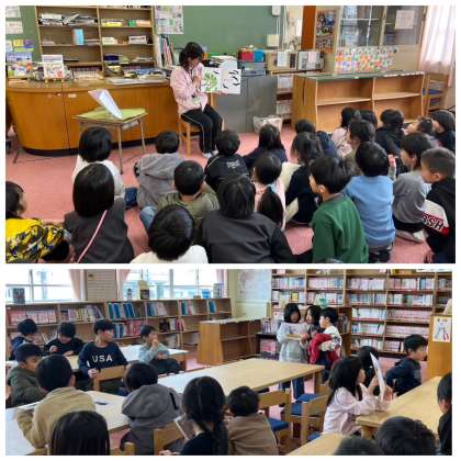 図書の時間に、国語科で学習した「スイミー」の作者レオ・レオニの絵本を使ったアニマシオン(読書ゲーム)を行いました。