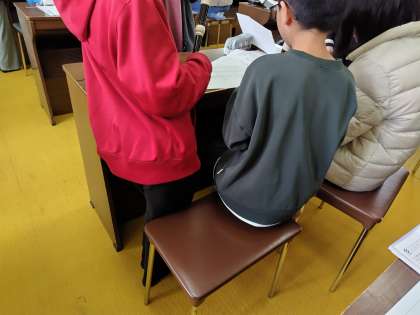 「さくらさくら」の都節音階、「ソーラン節」の民謡音階、「沖永良部の子もり歌」の沖縄音階の3つから選び、1人2小節、つないで8〜10小節の音楽を班ごとに作りました。