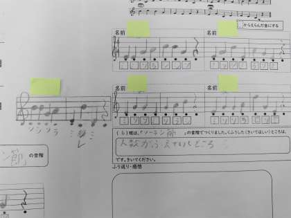 4年生の音楽科では、音階をもとにして、自分たちで音楽をつくりました。そして、つくった音楽(旋律)をリコーダーで工夫して吹きました。