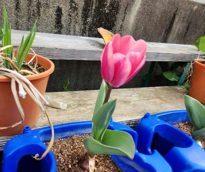 新二年生の育てていたチューリップは、キレイに咲いていましたよ。