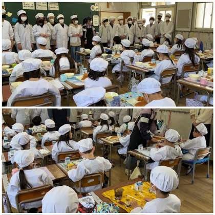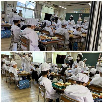 初めての給食ということで食べられるか心配でしたが、子どもたちはモリモリ食べていました。苦手なものもがんばって食べようとする、素敵な姿もたくさん見られました。