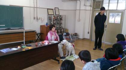 3時間目に山本さんに来ていただき、盲導犬についてのお話を聞きました。