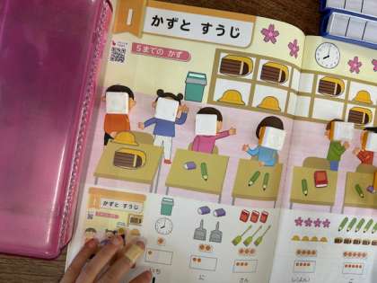 具体的なものの個数と1や2や3などの数詞を対応させられるように練習しました。