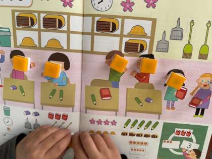 5までの数について、ブロックを使って学習しました。数えたいものにブロックを置いて、いくつあるのかを数えました。