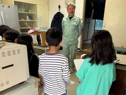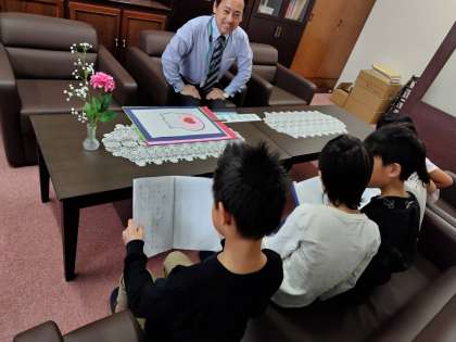 学校ではたくさんの人が働いています。そこでどのような仕事をしているか、班で質問を考えて実際に話を聞きに行きました。初めて入る部屋もあって少し緊張していましたが、ていねいな言葉で質問し、集中して話を聞くことができました。