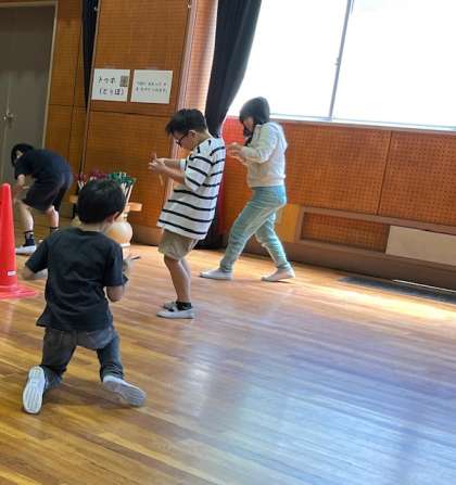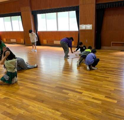 5時間目に、2クラス合同で韓国・朝鮮のコンギ、スッカラチョッカラ、ピソッチギという遊びを体験しました。
